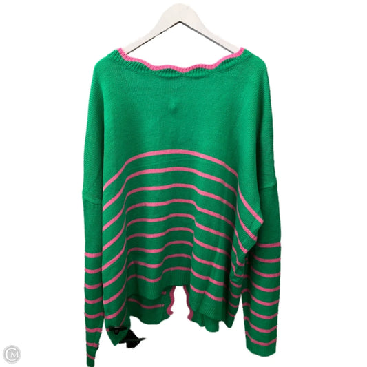 Sweater Cardigan By Clothes Mentor In Green & Pink, Size: 3x