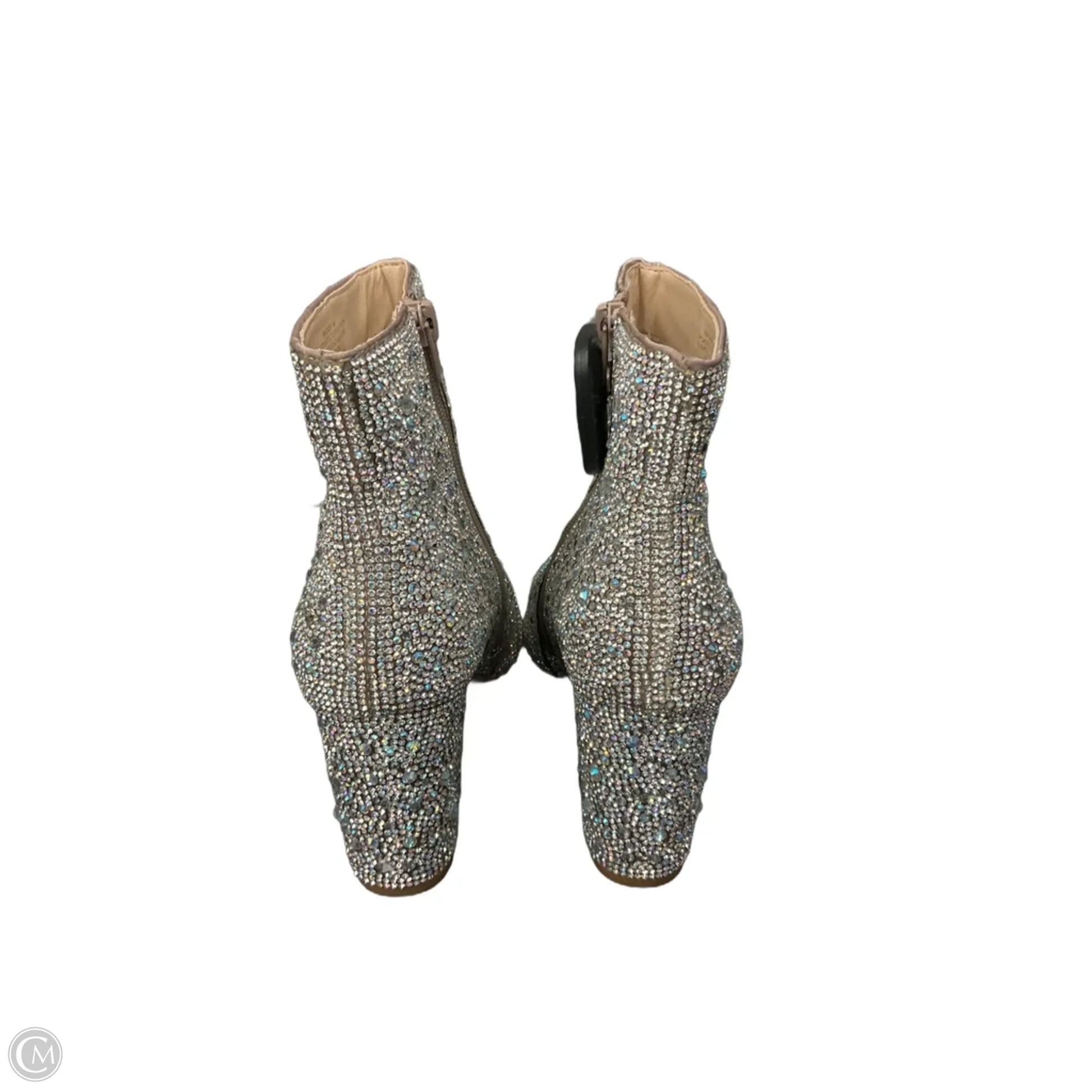Boots Ankle Heels By Betsey Johnson In Silver, Size: 6