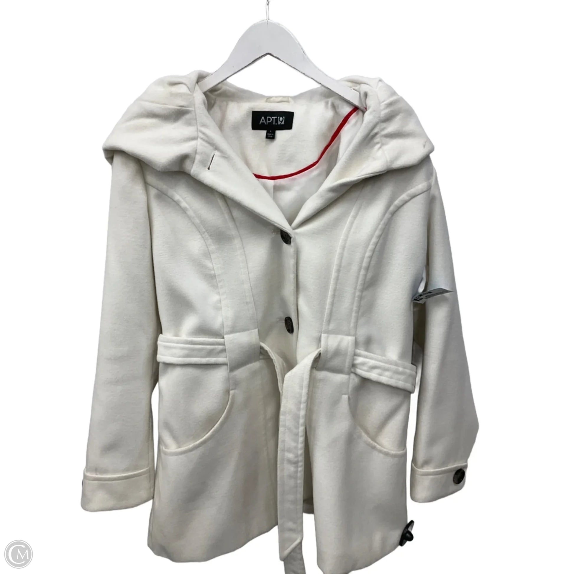 Indulge in the elegance of this white coat by Apt 9. Size L, this chic piece exudes sophistication and charm.