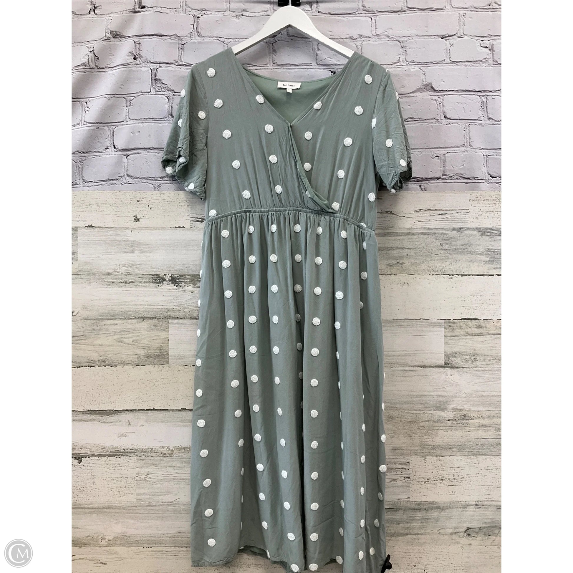 Dress Casual Midi By Bohme In Green & White, Size: M