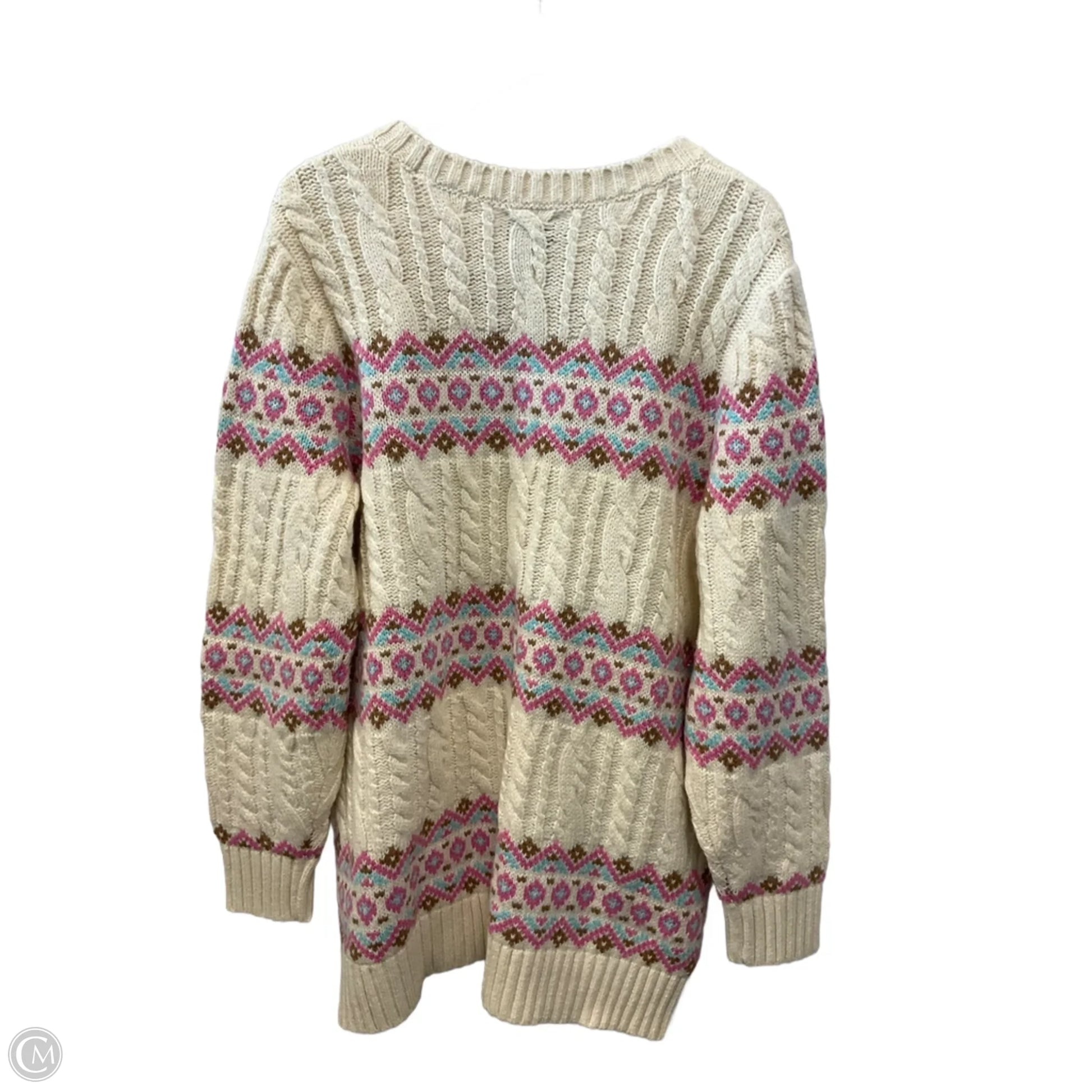 Sweater By Lands End In Cream & Pink, Size: Xl
