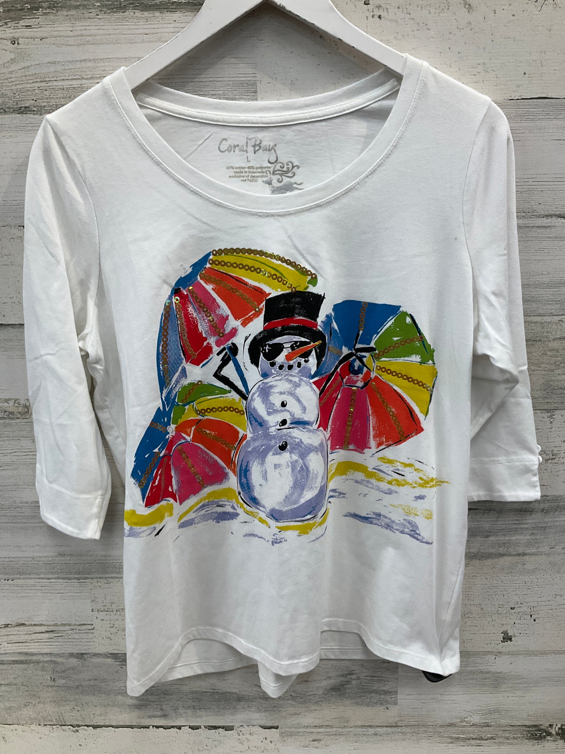 Top 3/4 Sleeve By Coral Bay In White, Size: L