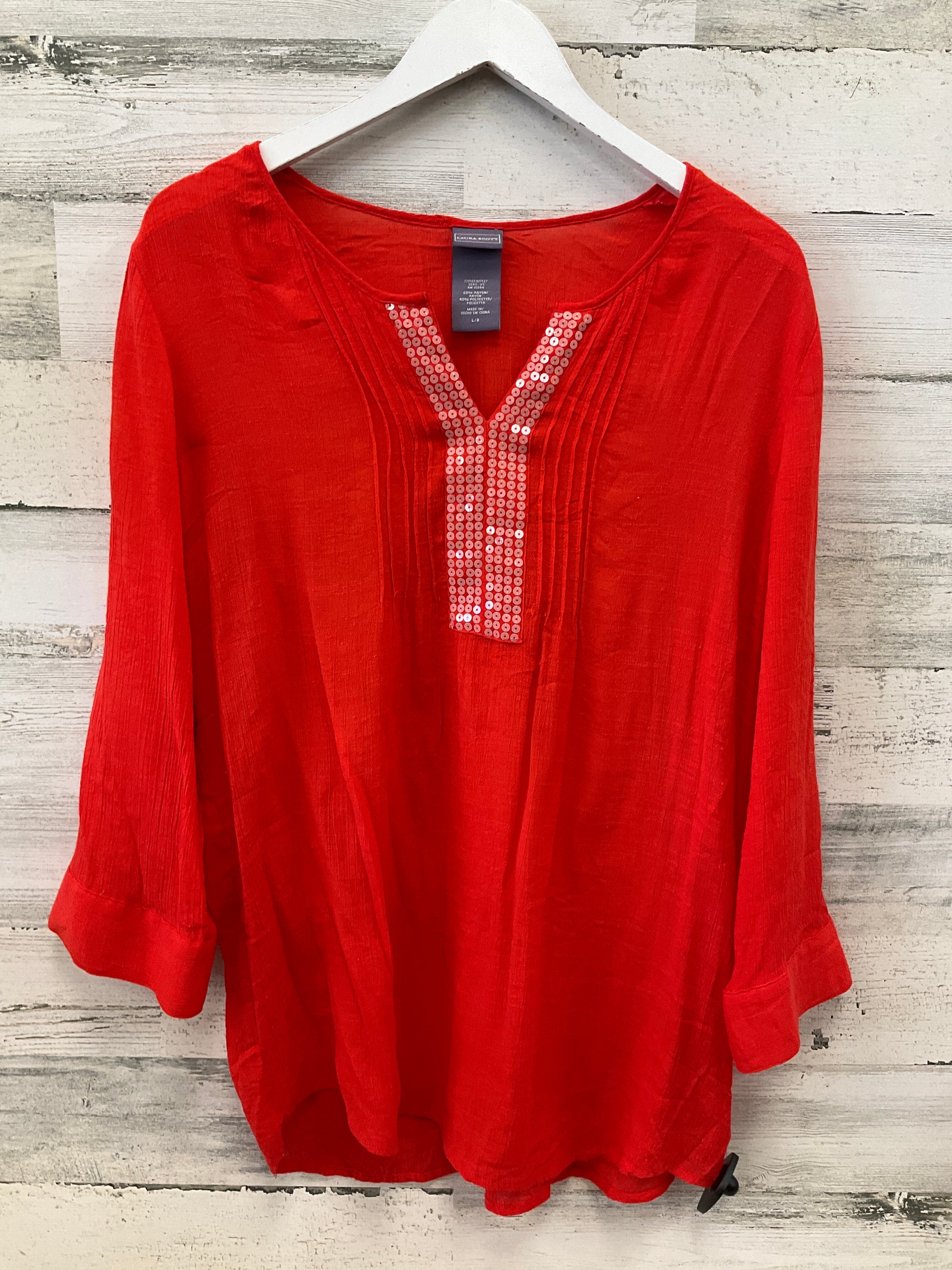 Top 3/4 Sleeve By Laura Scott In Red, Size:L