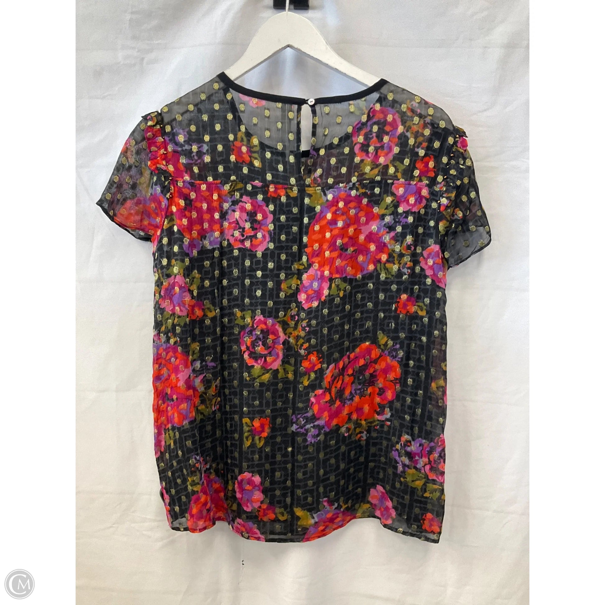Top Short Sleeve By Anthropologie In Black & Purple, Size: M