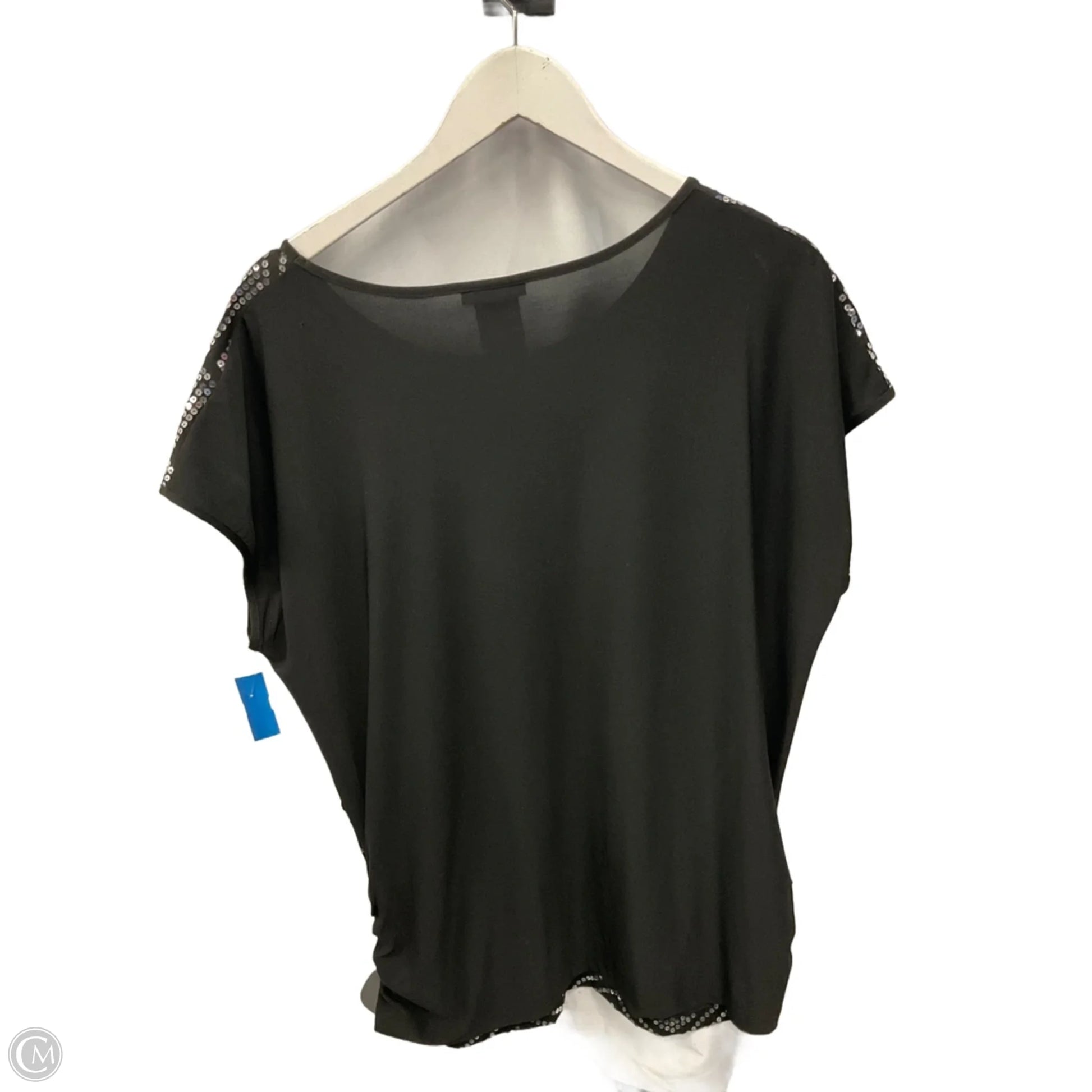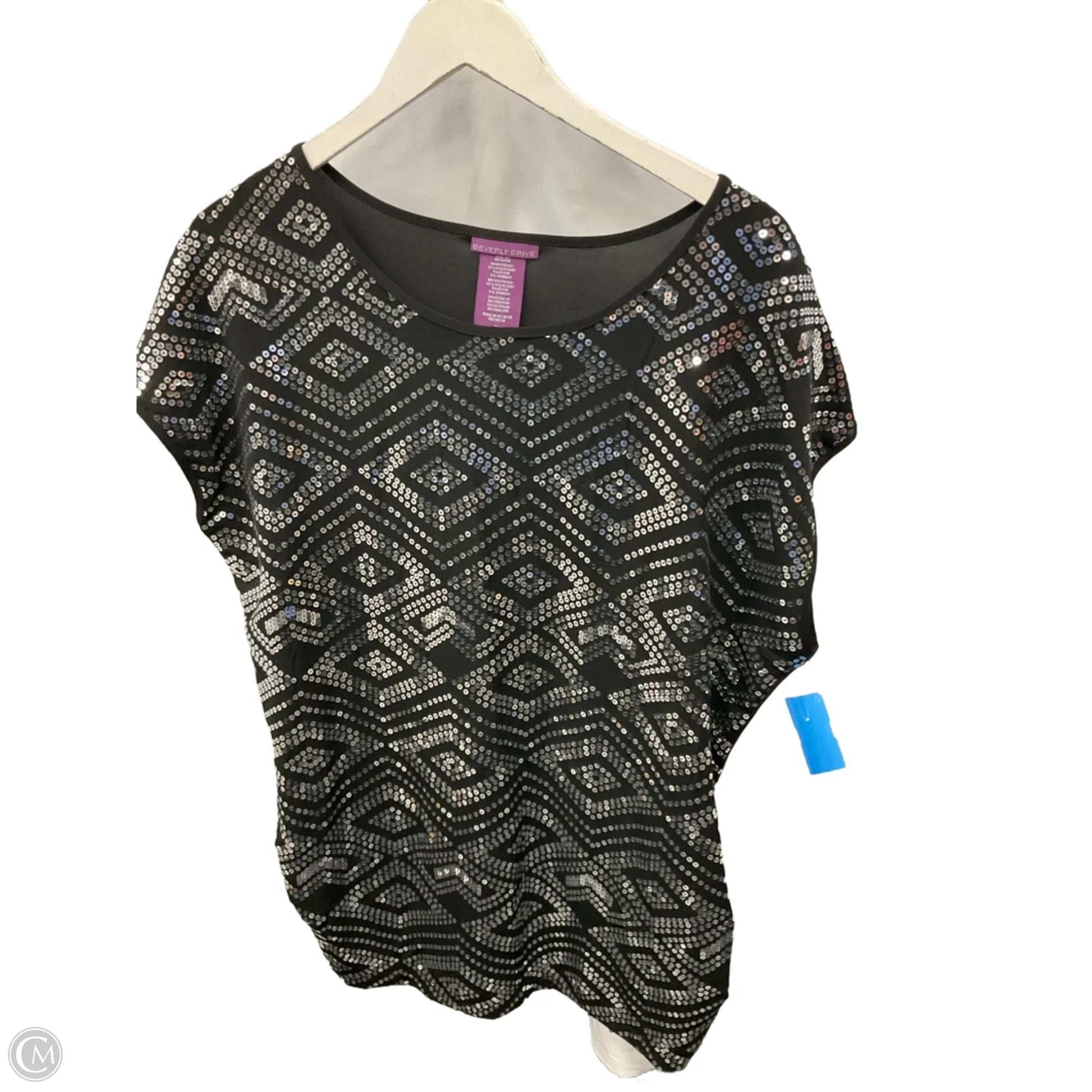 Top Short Sleeve By Beverly Drive In Black & Silver, Size: 2x